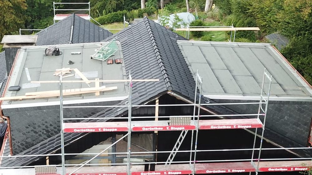 Grundsätzlich gehen wir bei einer Dachsanierung von einer Neueindeckung samt Dämmung und Anbringung einer sogenannten Dampfbremsfolie aus. Dies betrifft Flachdächer wie Steildächer. Je nach Zustand eines Dachs kann es notwendig sein, auch den Unterbau – beispielsweise den Dachstuhl – teilweise oder komplett zu erneuern. Dies kann, unter anderem, im Rahmen der Sanierung von historischen Gebäuden und Gebäuden, die lange Zeit unbewohnt waren, oder bei durch Sturm beschädigten Dächern vorkommen.
